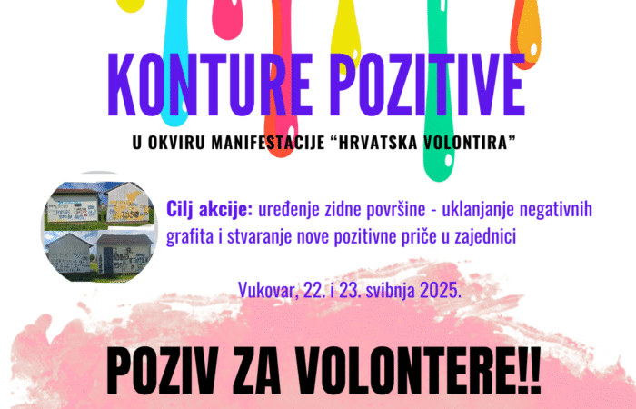 U sklopu manifestacije “Hrvatska volontira”, PRONI Centar/Volonterski centar Vukovar organizira volontersku akciju Konture pozitive kojom mijenjamo zidove u pozitivne i poučne