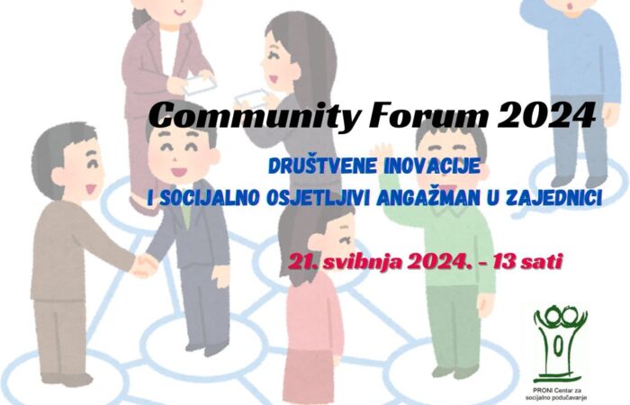 Author ICM Osijek Published on: 20. svibnja 2024. Community Forum ove godine pod nazivom “Društvene inovacije i socijalno osjetljivi angažman u zajednici” COMMUNITY FORUM 2024 „Društvene inovacije i socijalno osjetljivi angažman u zajednici“ – 21. svibnja 2024. Community Forum 2024 teži okupiti