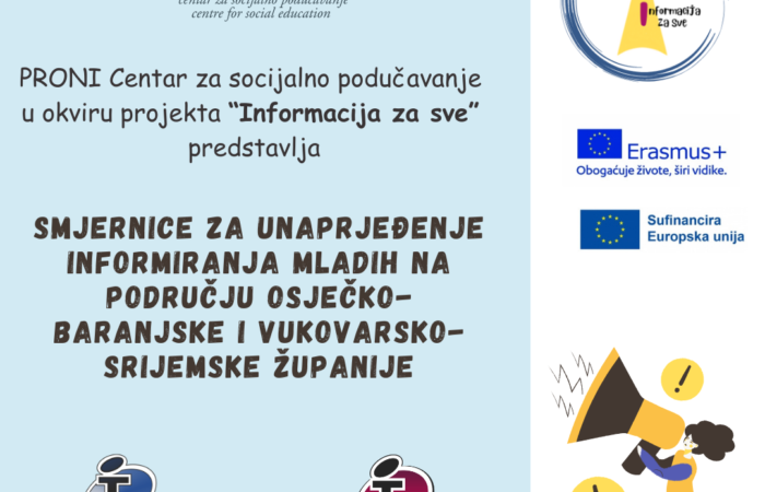 Smjernice za unaprjeđenje informiranja mladih na području Osječko-baranjske i Vukovarsko-srijemske županije PRONI Centar za socijalno podučavanje je 2023. godine pokrenuo