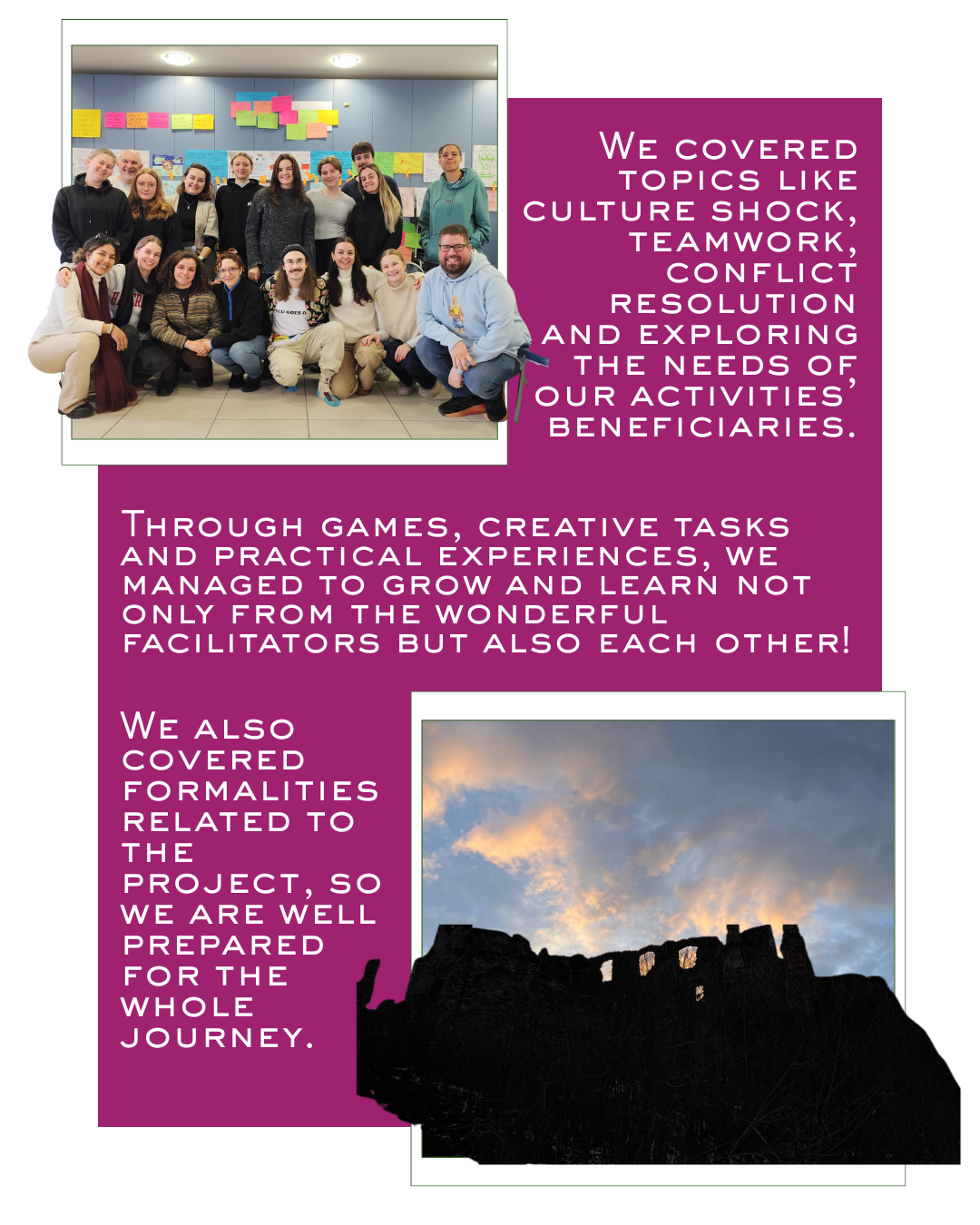 Trening je odigrao ključnu ulogu u tome da se osjećam samopouzdano i pripremljeno za svoje volontersko iskustvo. Održao se od 12. do 17. siječnja 2026. u malom gradu Orahovici, gdje smo, ne samo zajedno učili, već smo imali i vremena istražiti područje i polako se smjestiti u novo okruženje.