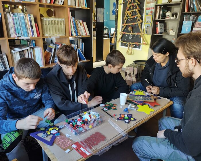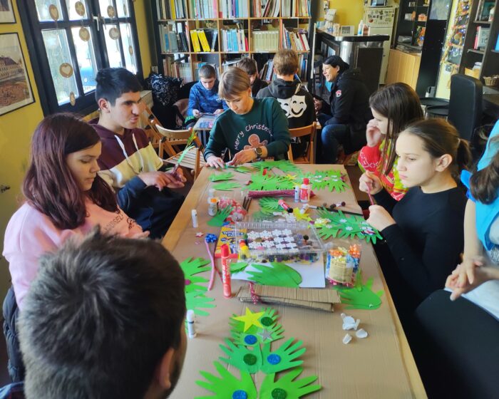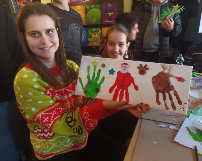 Kreativnu radionicu izrade božićnih ukrasa vodili su međunarodni volonteri PRONI Centra, Alexandra i Lucas koji u Vukovaru borave u okviru programa Europskih snaga solidarnosti, a ujedno u spomenutoj školi redovito organiziraju aktivnosti s učenicima.