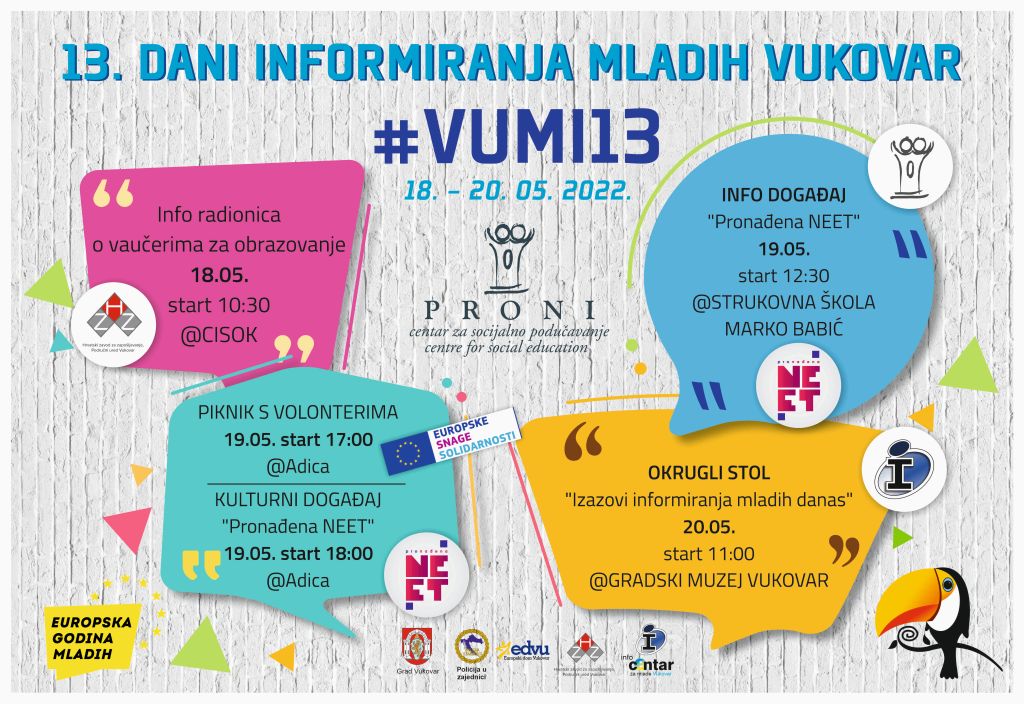 U okviru projekta “Pronađena NEET” 25.5. 2022. organizirali smo info događaj za maturante s ciljem predstavljanja mogućnosti ulaganja u nastavak svog obrazovanja radi povećanja konkurentnosti na tržištu rada. Na info događaju sudjelovali su maturanti iz Srednje škole Dalj iz Dalja koji su informirani o mogućnostima nastavka obrazovanja i stjecanja novih vještina i kompetencija, a […]