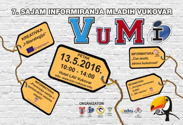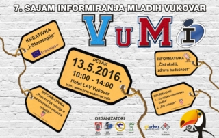 Info centar za mlade Vukovar poziva te na VuMi 2016. – 7. Sajam informiranja mladih Vukovar koji će se održati u petak 13. svibnja 2016. od 10:00 do 14:00 sati u Hotelu Lav u Vukovaru.