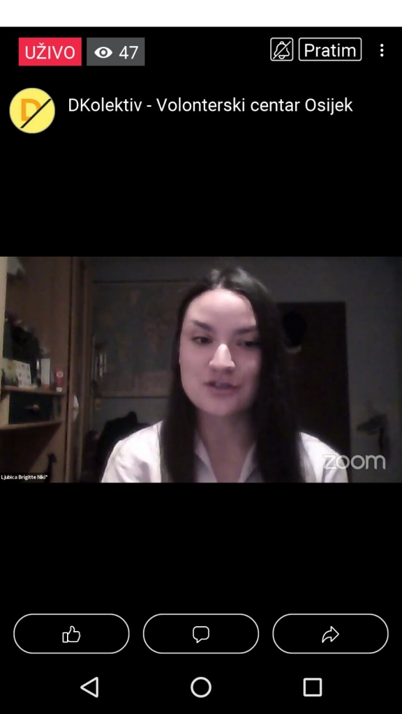 I u ovim izazovnim vremenima ove godine, od samog početka krize koronavirusa, Ljubica se je bila važan dio podrške mladima u području mentalnog zdravlja kroz online aktivnost #zoomirajse. Ljubica je samostalno pisala članke na aktualne teme mentalnog zdravlja (suživot u obitelji,slika o sebi, motivacija.) te je kroz video mladima na njima prihvatljiv i vrlo pristupačan način govorila o ovoj temi.