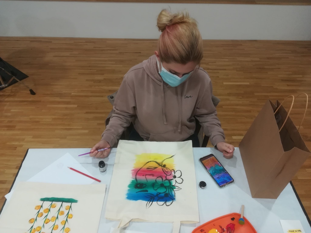 Skupina mladih Hangout nastavila je s provedbom projekta „Drvo solidarnosti“ i ponovno aktivirala mlade iz Osijeka i okolice s radionicom „Oslikaj svoju eko torbu!“, jer briga o okolišu u našim je rukama – doslovno. Zbog poštivanja trenutnih epidemioloških mjera polaznici su bili podijeljeni u dvije skupine i radionica se održala u ponedjeljak i utorak (16. i 17. studenog) u prostorijama Kulturnog centra Osijek. Radionicu su održale Tea Žagar i Ana Previšić, a u organizaciji su pomogli i ostali članovi Hangouta. Polaznici radionice imali su zadatak oslikati dvije torbe –jednu za sebe i drugu za korisnike staračkog doma, što je uz opuštenu atmosferu bio vrlo lak zadatak. Polaznici su, osim samog oslikavanja torbi, naučili i o važnosti održivog načina života jer čak i platnene torbe prestaju biti ekološke ako se koriste u nerazumnim količinama. Recikliranje i višekratna upotreba predmeta ključni su kako bismo pridonijeli smanjenju količine otpada.