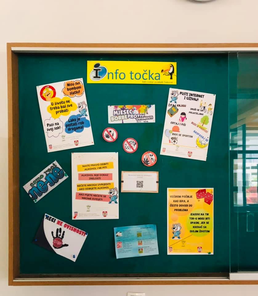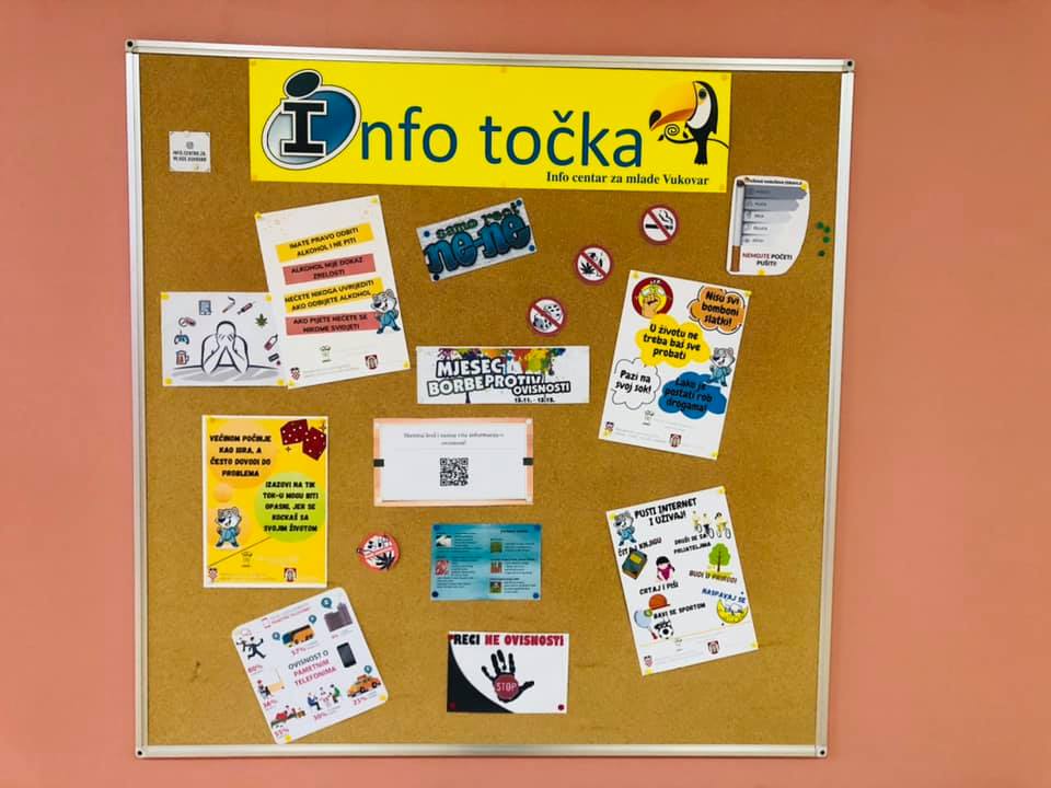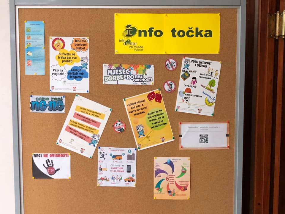 Pored online informativki, postavljene su info točke u srednjim školama na području grada Vukovara gdje se učenici također mogu upoznati o štetnostima navedenih ovisnosti.