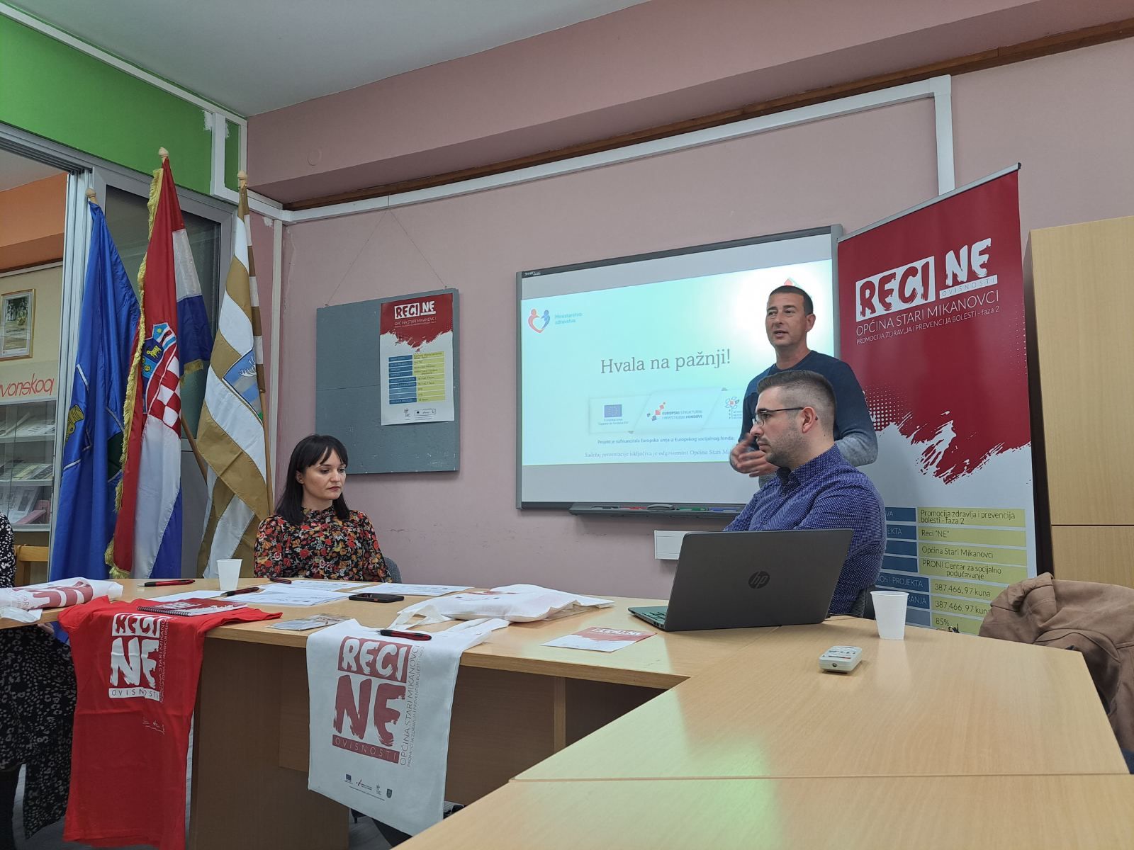 U okviru projekta “Reci NE”, UP.02.2.1.08.0112, čiji je nositelj Općina Stari Mikanovci, a PRONI Centar partner na provedbi, u petak 21. listopada u prostoru OŠ Stjepan Cvrković Stari Mikanovci, održana je početna konferencija s ciljem upoznavanja javnosti o projektu, njegovim ciljevima i rezultatima te planom provedbe.