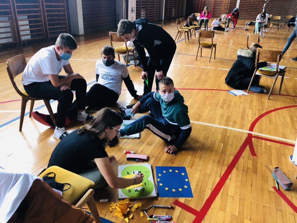 Osim toga, učenici obje škole i kreativno su se izrazili o EU putem izrade plakata i crteža te su u sklopu Time to move kampanje bili upoznati s mogućnostima mobilnosti mladih kroz informiranje te igru s kartama.