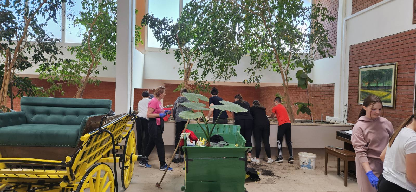 - Prepoznata je potreba da se uredi unutrašnjost škole odnosno da se poboljša izgled dotrajalih bilja i žardinjera koje se nalaze u školi. Stoga su volonteri/učenici ponovo zasukali rukave, uzeli alatke u ruke i “čistili” žardinjere od dotrajale zemlje i bilja te su zamijenili novim, svježim i dugoročnijim koji će krasiti unutrašnjost škole i ispratiti brojne generacije.