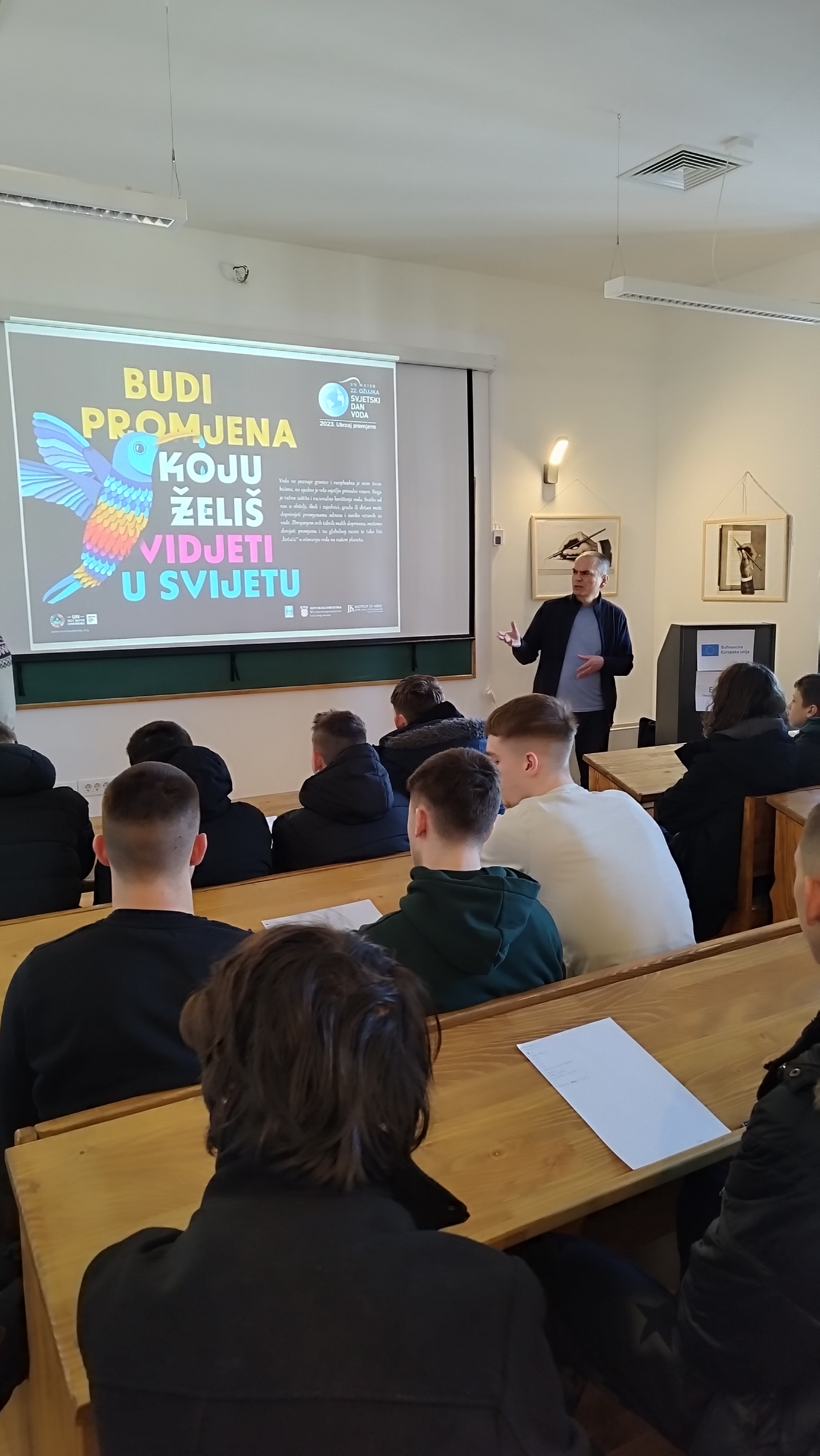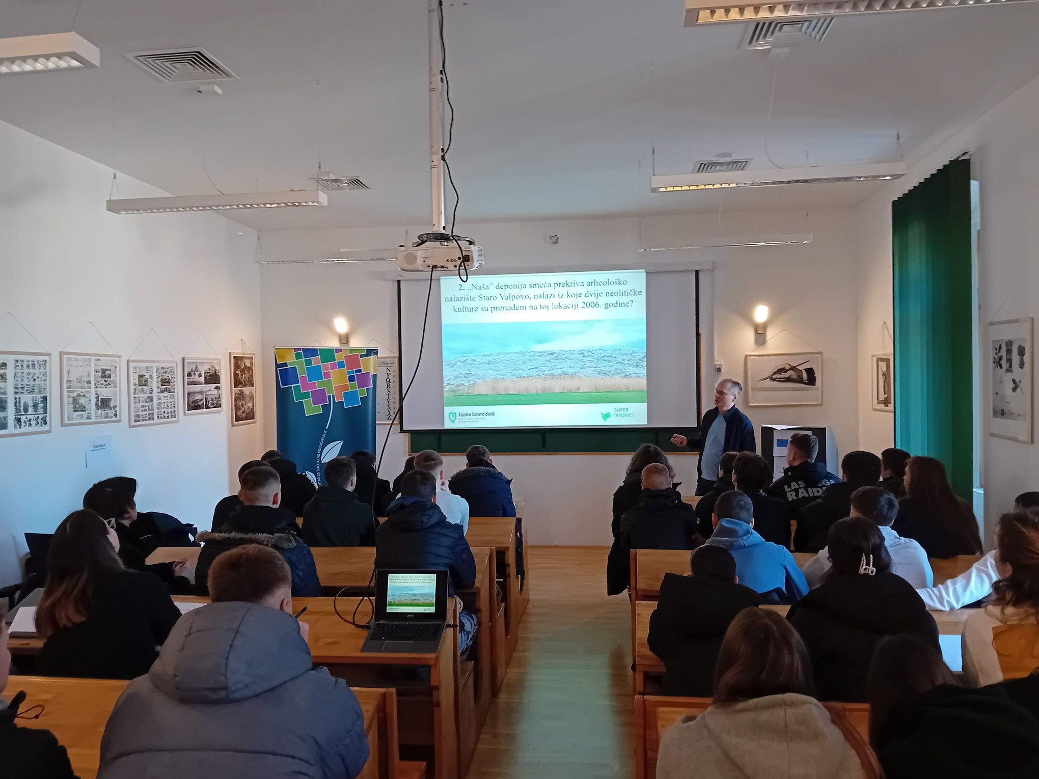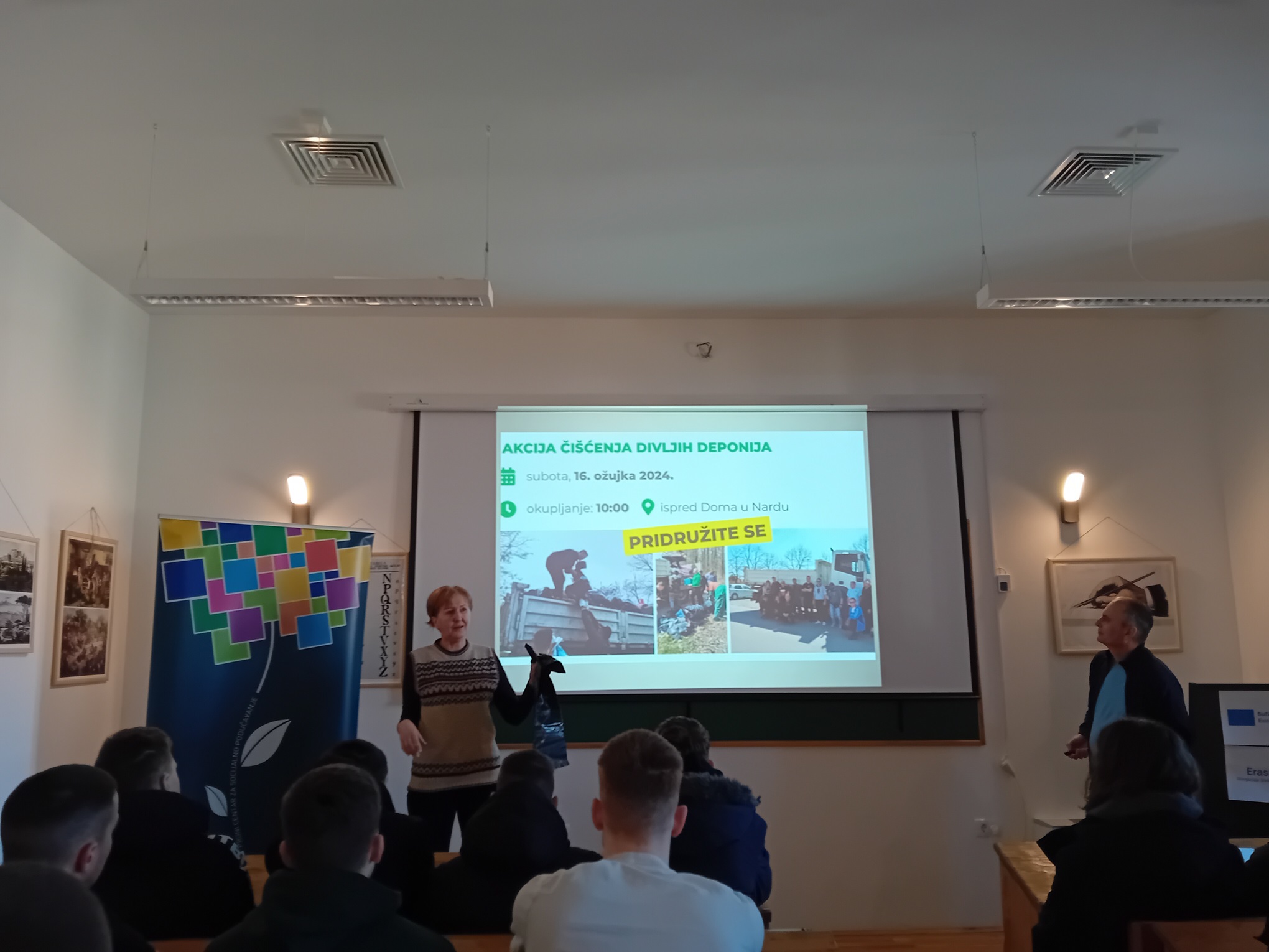 Događaj je započeo predstavljanjem projekta Pokreni s(v)e! u Edukacijsko-interpretacijskom centru Matije Petra Katančića. Nakon toga, sudionici su imali priliku upoznati rad ekološke udruge “Eko-Karašica” kroz inspirativno predavanje i kviz dr. sc. Dinka Župana. On je govorio o važnosti volonterskog rada u zaštiti okoliša te kako se mladi mogu uključiti u različite ekološke inicijative u svojoj zajednici. Bila je ovo mogućnost čuti nove informacije, postaviti pitanja i naći mogućnost da se mladi više uključe u ekološke aktivnosti koje se direktno tiču ne samo kvalitete života danas, nego direktno mijenjaju i njihovu budućnost.