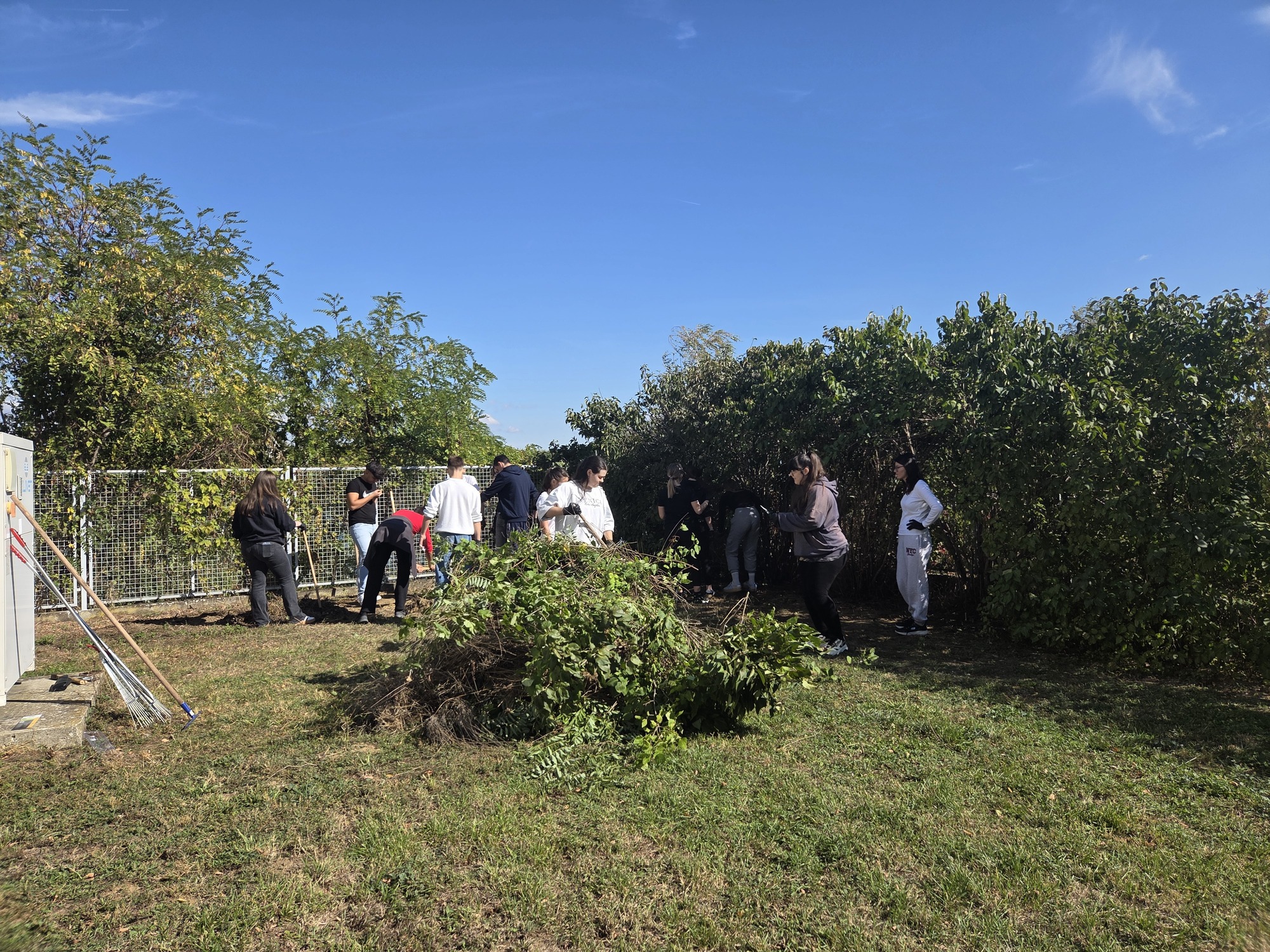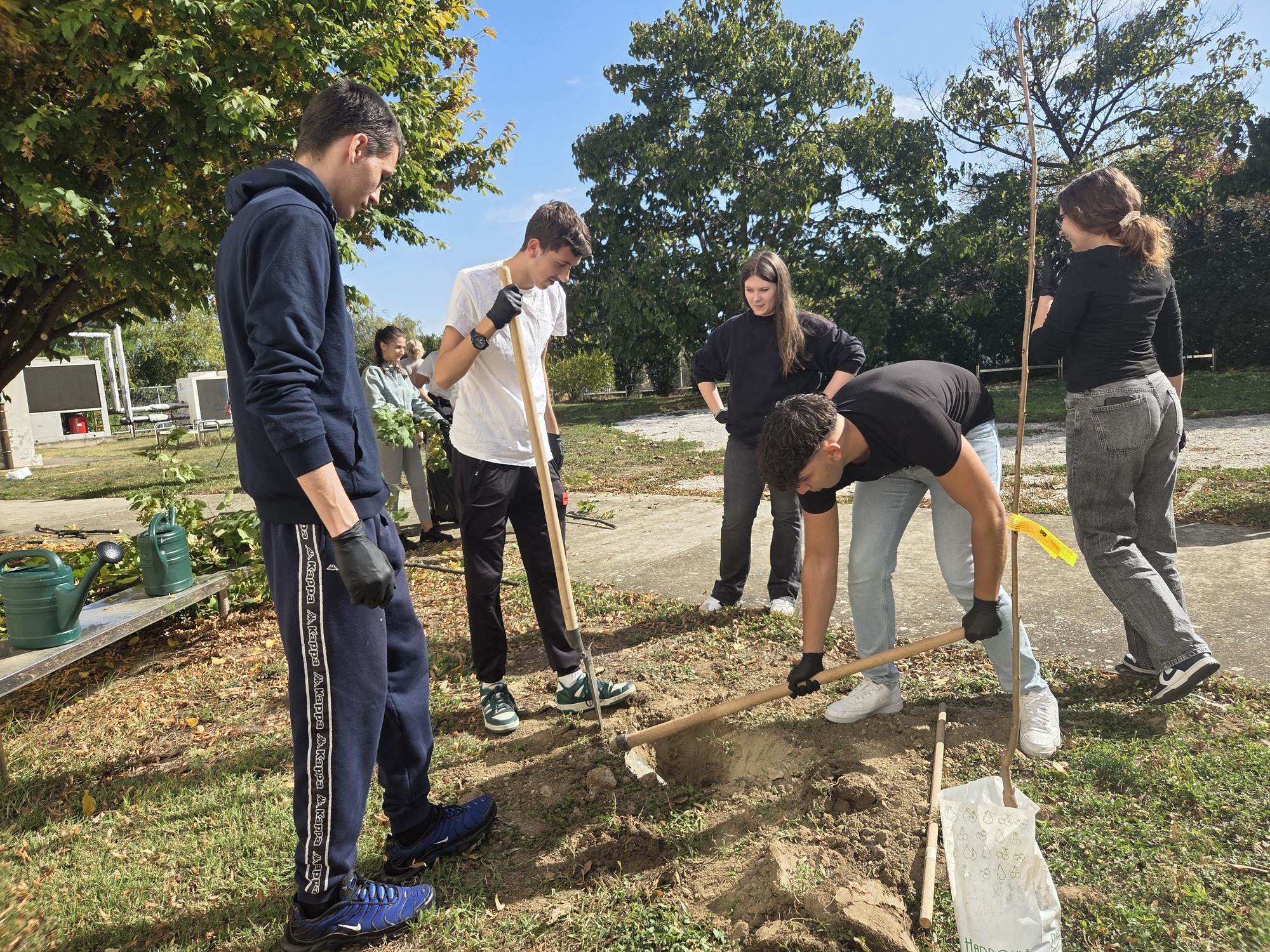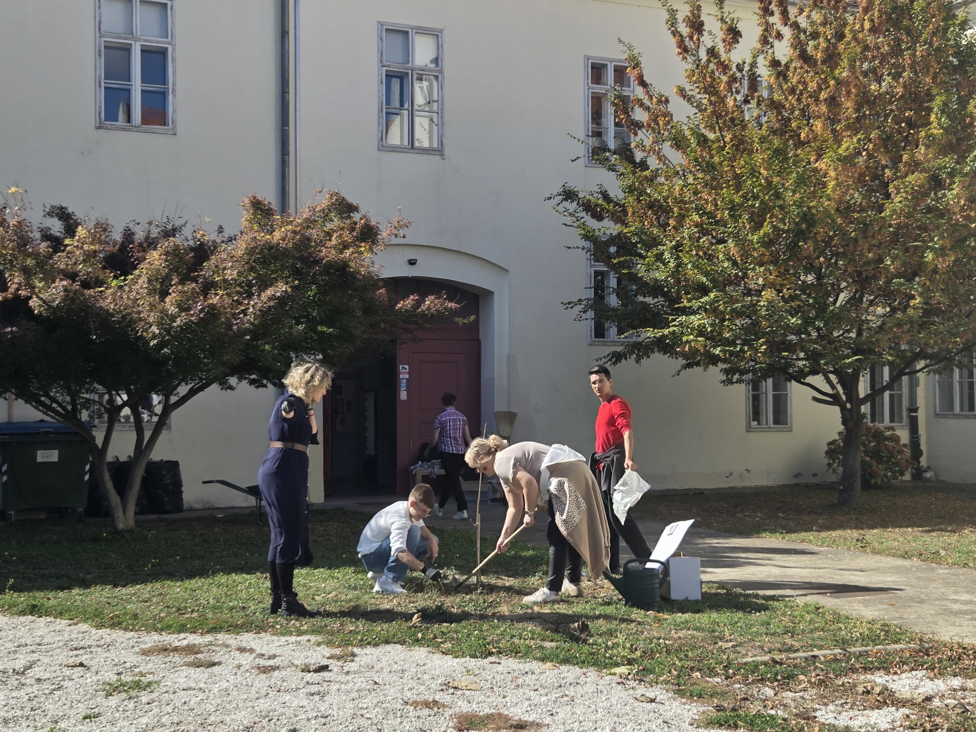 Posađeno je osam sadnica voćki, o kojima će nadalje brinuti učenici i djelatnici škole i uživati u plodovima voćki, obrezano je staro granje jorgovana i lješnjaka i očiščeno je dvorište.