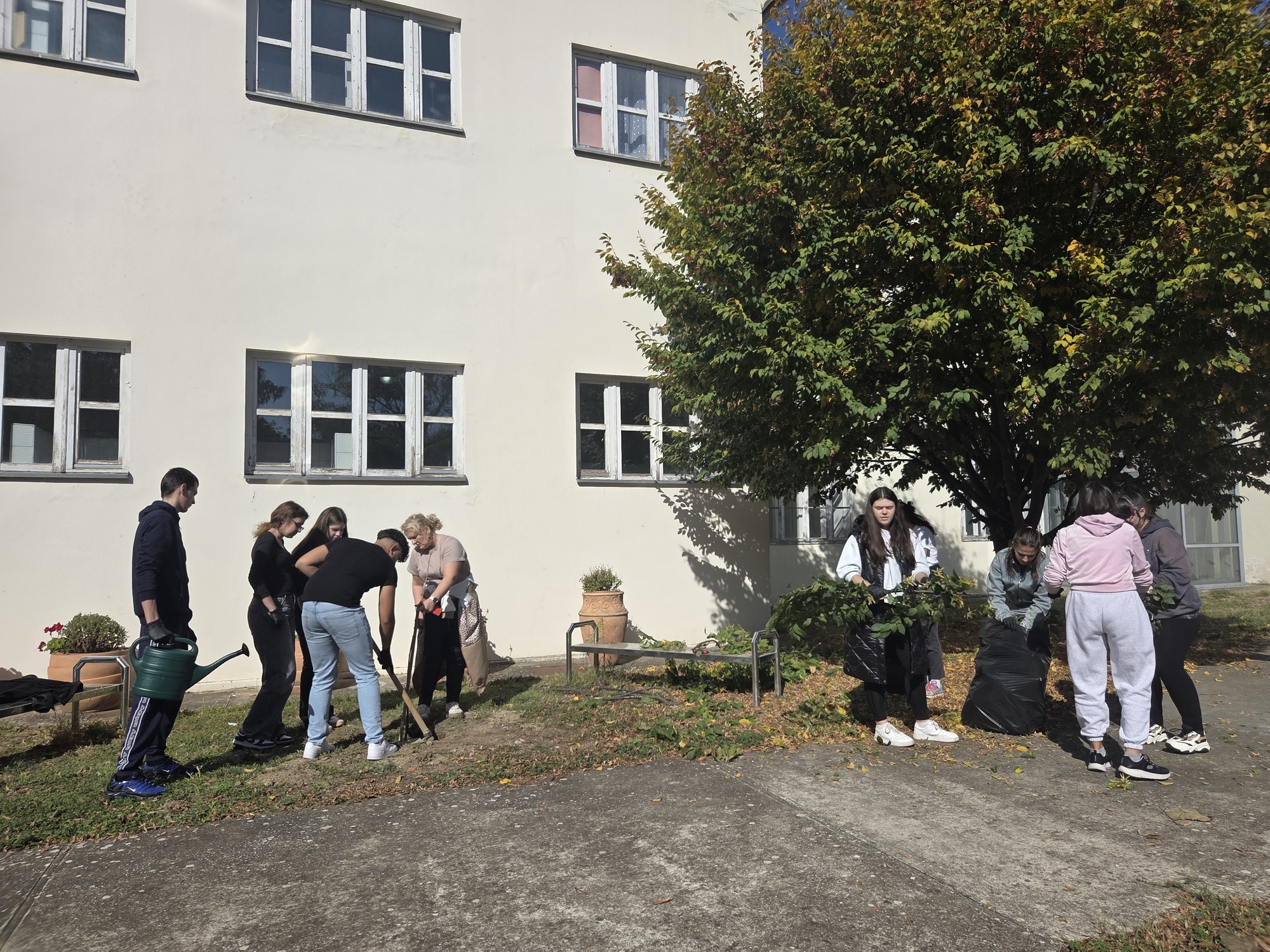 Učenici i članovi Školskog volonterskog kluba PSŠ, djelatnici škole, strane ESS volonterke PRONI Centra i mladi (neformalna skupina) projekta solidarnosti “Solidarna zajednica” udružili su svoje snage i dvorište škole učinili drugačijim.